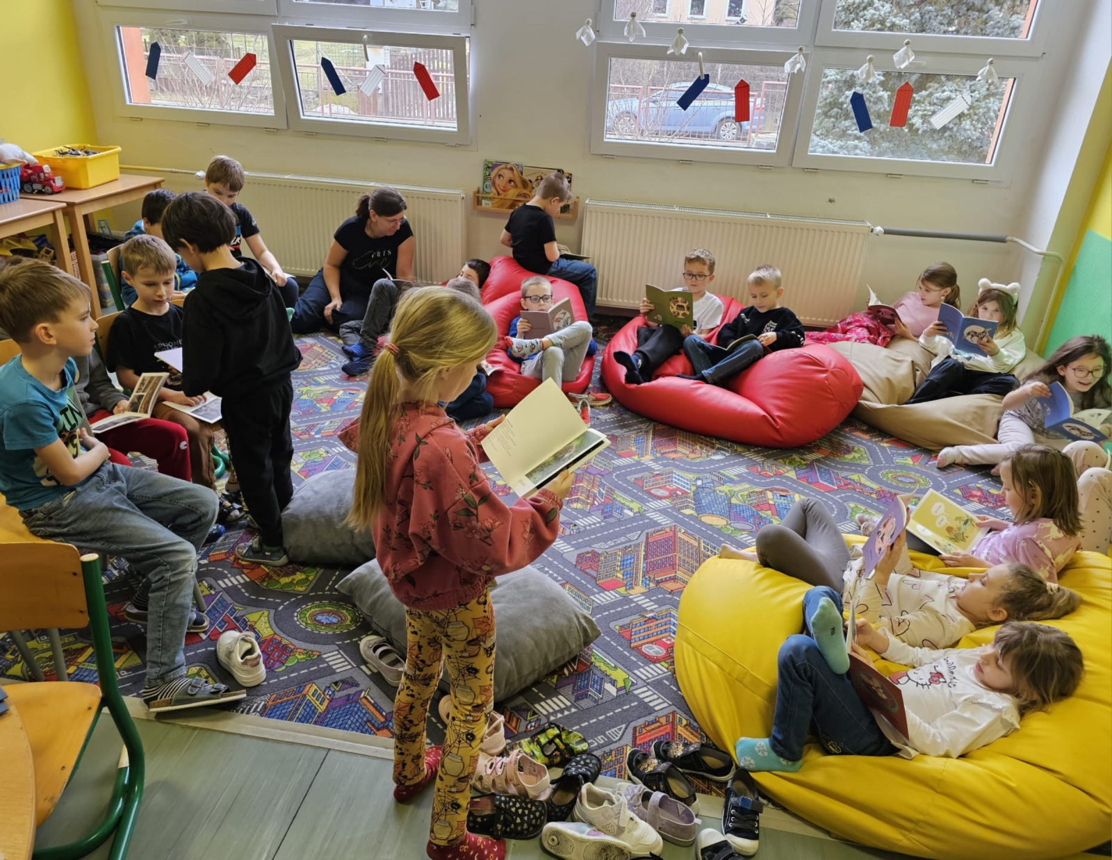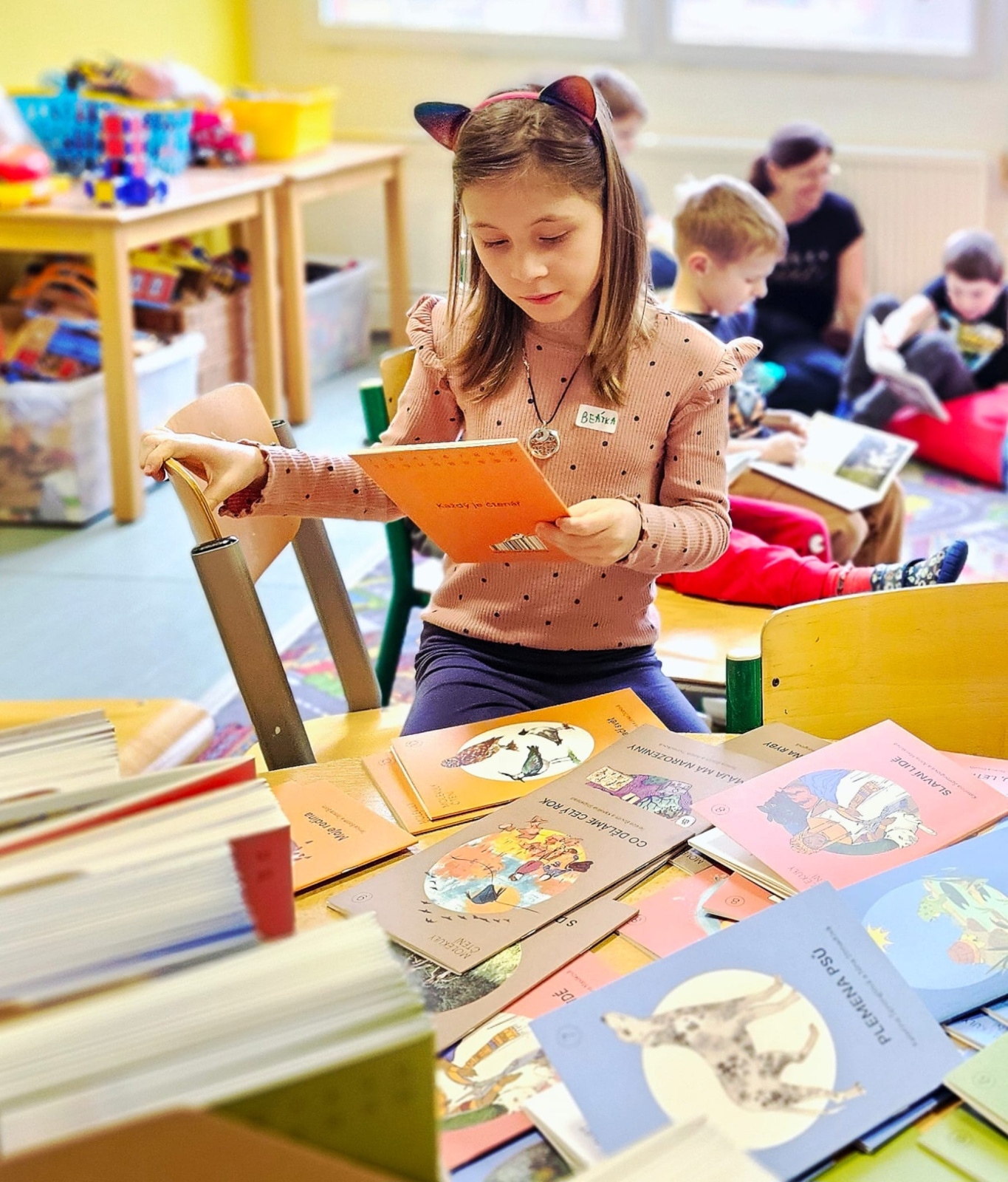 Molekuly čtení - první seznámení s projektem víceúrovňového čtení. Děti z druhé třídy si vybíraly a četly knihy podle své vlastní čtenářské úrovně, někdo přečetl 1 knížku, někdo 4, ale líbilo se všem.