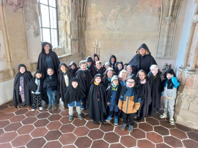 Děti ze třídy Berušek navštívily Sázavský klášter, kde se jich ujala naše milá kolegyňka Martina Štědrová. Děti se oblečením do pláště proměnily v poutníky a šly po stopách svatého Prokopa. Martiny vyprávění bylo velice poutavé, přizpůsobené věku dětí. Děti stavěly z kostek klášter a na závěr si vyrobily voňavý sáček, naplněný bylinkami.