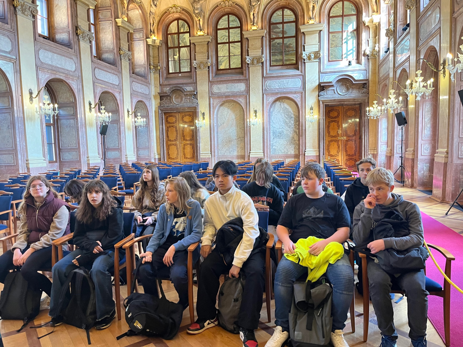 Dnes se 8.A vydala do barokního Valdštejnského paláce v Praze, kde sídlí Senát ČR. Exkurze byla zaměřena jak na barokní kulturu a období třicetileté války, tak samozřejmě na parlamentní demokracii a fungování našeho státu. Bylo to velmi poučné, zároveň jsme byli uchváceni krásami Valdštejnské zahrady.